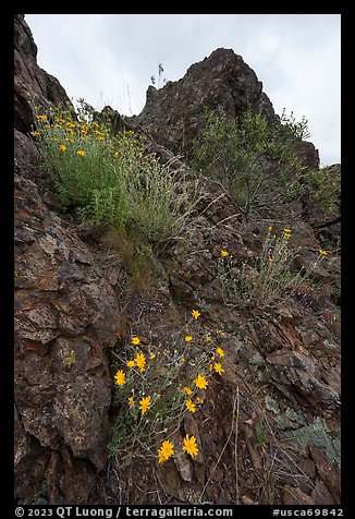 Sunflowers and Signal Rock. Berryessa Snow Mountain National Monument, California, USA