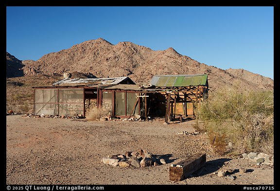 Abandoned cabin and Chuckwalla Mountains. Chuckwalla National Monument, California, USA