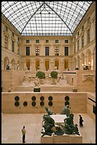 Cafe terrace in the Louvre main courtyard with glass pyramid. Paris, France ( color) Pyramid and triangular basin in the Louvre, sunset. Paris, France ( color) Pavilion in the Sully Wing of the Louvre at sunset. Paris, France ( color) Louvre pyramid transparent at sunset. Paris, France ( color) Louvre and  pyramid  seen through the Carousel triumphal arch at night. Paris, France ( color) Arche de triomphe du Carousel, Louvre, and Pyramid at night. Paris, France ( color) Pyramid and Louvre at night. Paris, France ( color) Pyramid, basin, and Louvre at night. Paris, France ( color) Woman in bridal gown in front of the Louvre by night. Paris, France ( color) Louvre  at night. Paris, France ( color) IM Pei Pyramid and Sully Wing at night, The Louvre. Paris, France ( color) IM Pei Pyramid and reflection ponds at night, The Louvre. Paris, France ( color) Tourists in the Louvre museum. Paris, France ( color) Louvre Museum room with sculptures and skylight. Paris, France ( color) Pyramide inversee (Inverted pyramid) skylight. Paris, France ( color) Jardin des Tuileries and Louvre in winter. Paris, France ( color) Couple eating at an outdoor table in the Palais Royal arcades. Paris, France ( color) Equestrian Statue in the Louvre Gardens. Paris, France ( color) Statue of Joan of Arc on the place des Victoires. Paris, France ( color) Lighted Ferris wheel in the Tuileries garden. Paris, France ( color) Detail of Ferris wheel at night, Tuileries. Paris, France ( color)