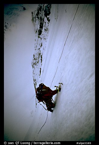 Frank Levy on the central slope of North face of Les Droites, Mont-Blanc Range, Alps, France.