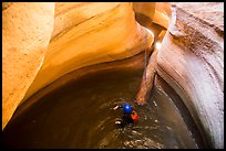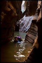 Canyoneer in sunny pool of water, Pine Creek Canyon. Zion National Park, Utah ( color) Canyoneer looks at water-filled pool. Zion National Park, Utah ( color) Woman standing in waist-high pool in Pine Creek Canyon. Zion National Park, Utah ( color) Woman carries rope, as man wades in chest-high water in Pine Creek Canyon. Zion National Park, Utah ( color) Canyoneer swims in pool with golden light, Pine Creek Canyon. Zion National Park, Utah ( color) Canyonneer swimming in Pine Creek Canyon. Zion National Park, Utah ( color) Canyoneers swim into narrow corridor, Pine Creek Canyon. Zion National Park, Utah ( color) Woman in deep water of dark narrows, Pine Creek Canyon. Zion National Park, Utah ( color) Canyoning in dark narrows, Pine Creek Canyon. Zion National Park, Utah ( color) Canyonneer wades in subterranean section of Pine Creek Canyon. Zion National Park, Utah ( color) Canyonneers walk in narrows of Pine Creek Canyon. Zion National Park, Utah ( color) Hikers in Pine Creek Canyon. Zion National Park, Utah ( color) View from above of hiker walking in Pine Creek Canyon. Zion National Park, Utah ( color) Woman rappels down in Pine Creek Canyon. Zion National Park, Utah ( color) Woman setting out for free rappel in Pine Creek Canyon. Zion National Park, Utah ( color) Woman on free hanging rappel in Pine Creek Canyon. Zion National Park, Utah ( color) Free hanging rappel in huge chamber, Pine Creek Canyon. Zion National Park, Utah ( color) Man between glowing canyon walls, Pine Creek Canyon. Zion National Park, Utah ( color) Canyoneers in chamber, Pine Creek Canyon. Zion National Park, Utah ( color)