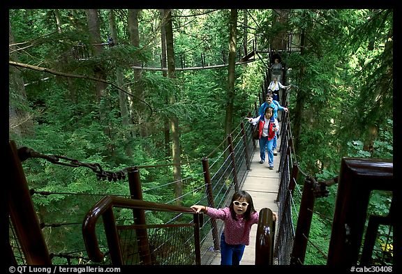 Kid on treetop trail. Vancouver, British Columbia, Canada
