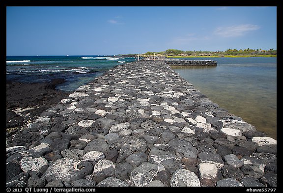 Rock wall separating Kaloko fishpond from the ocean, Kaloko-Honokohau National Historical Park. Hawaii, USA