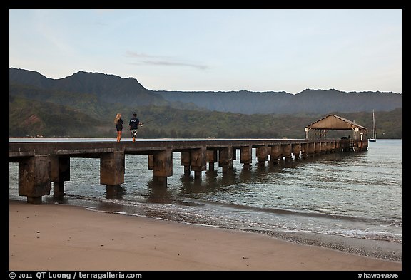 Conversation on Hanalei Pier. Kauai island, Hawaii, USA