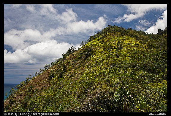 Tropical hill and clouds, Na Pali coast. Kauai island, Hawaii, USA