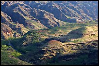 Waimea Canyon, despite its smaller size of one mile across and ten miles long, deserves its nickname "Grand Canyon of the Pacific". Although not as old, large, or deep, it holds its own with the frequent interplay of light and cloud shadows, over its lush vegetation and red rocks. Its river-cut gorge is almost 3000 feet deep, a surprising sight on such a small island.