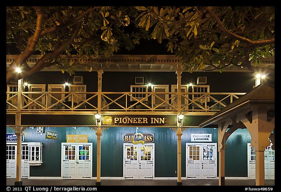 Pioneer Inn facade at night. Lahaina, Maui, Hawaii, USA