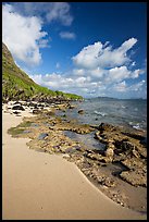 Makapuu head lighthouse, sunrise. Oahu island, Hawaii, USA ( color) Heiau at sunrise near Makapuu Beach. Oahu island, Hawaii, USA ( color) Coastline and Makapuu Beach, early morning. Oahu island, Hawaii, USA ( color) Makapuu head ligthouse, early morning. Oahu island, Hawaii, USA ( color) Sandy Beach and Koko crater, morning. Oahu island, Hawaii, USA ( color) Beach and rocks near Makai research pier,  early morning. Oahu island, Hawaii, USA ( color) Rocks and turquoise waters near Makai research pier. Oahu island, Hawaii, USA ( color) Coastline and highway, South-East. Oahu island, Hawaii, USA ( color) Makapuu Beach and bay. Oahu island, Hawaii, USA ( color) Makapuu Beach and turquoise waters, mid-day. Oahu island, Hawaii, USA ( color) Paragliding above Makapuu Beach. Oahu island, Hawaii, USA ( color) Turquoise waters and woman seen through Horsetail Ironwoods (Casuarina equisetifolia) at Waimanalo Beach. Oahu island, Hawaii, USA ( color) Woman with a flower in hair getting shave ice, Waimanalo. Oahu island, Hawaii, USA ( color) Woman sunning herself on Waimanalo Beach. Oahu island, Hawaii, USA ( color) Young women doing gymnastics on Waimanalo Beach. Oahu island, Hawaii, USA ( color) Young women facing ocean in meditative pose on Waimanalo Beach. Oahu island, Hawaii, USA ( color) Swimmers in water, Waimanalo Beach. Oahu island, Hawaii, USA ( color) Waimanalo Beach and ocean with turquoise waters and clouds. Oahu island, Hawaii, USA ( color) Foam, sand, and turquoise waters, Waimanalo Beach. Oahu island, Hawaii, USA ( color) Sand, turquoise waters, and pali, Waimanalo Beach. Oahu island, Hawaii, USA ( color)
