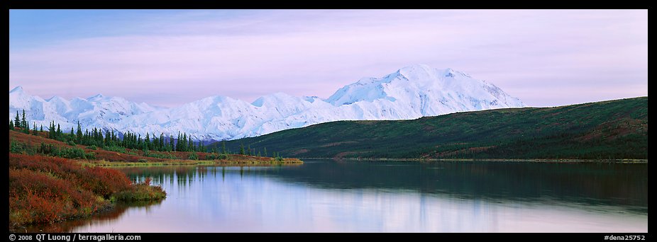 Pastel landscape with Mount McKinley reflected in lake. Denali National Park, Alaska, USA. (Panoramic)