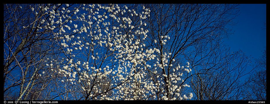 Early blooming tree amongst bare forest. Shenandoah National Park (Panoramic)