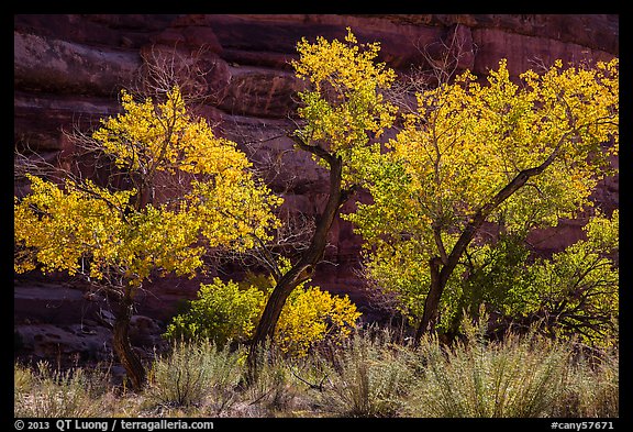Cottonwood trees in autumn color in the Maze. Canyonlands National Park, Utah, USA.