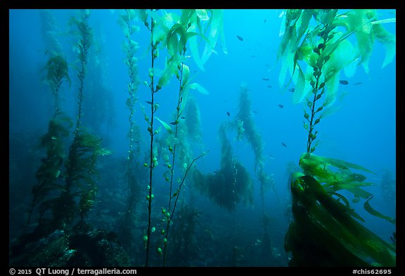 Giant kelp, pneumatocysts, and fish, Santa Barbara Island. Channel Islands National Park, California, USA.