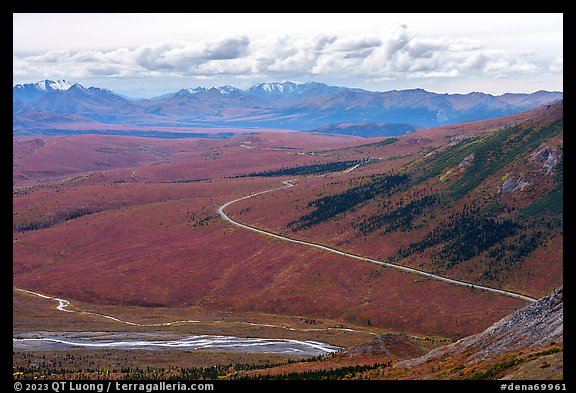 Savage River and park road from above. Denali National Park, Alaska, USA.