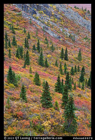 Spruce trees on slope. Denali National Park, Alaska, USA.