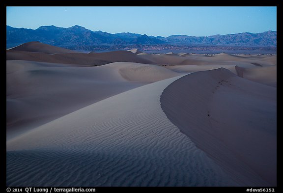 Dusk over the Mesquite Sand dunes. Death Valley National Park, California, USA.