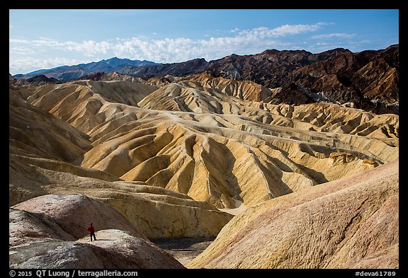 Visitor looking, Zabriskie Point. Death Valley National Park, California, USA.