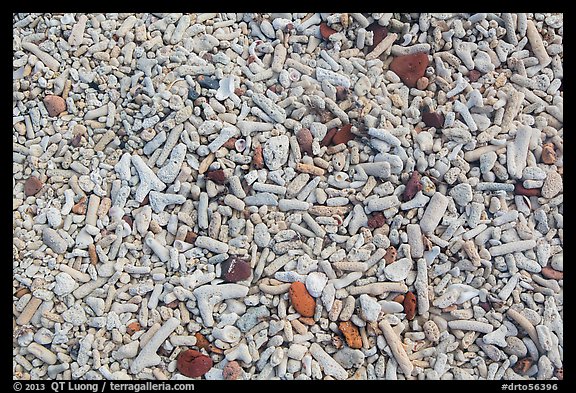 Coral and brick pieces on beach, Garden Key. Dry Tortugas National Park, Florida, USA.