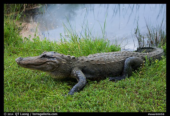 Alligator next to pond, Shark Valley. Everglades National Park, Florida, USA.