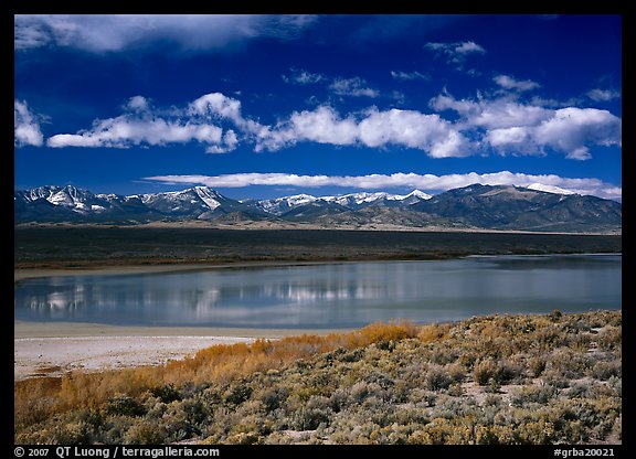Sagebrush, lake, and Snake Range. Great Basin National Park, Nevada, USA.