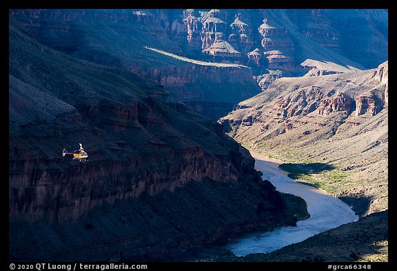Helicopter over Grand Canyon, Whitmore Wash. Grand Canyon National Park, Arizona, USA.