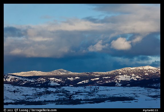 Late light on hills in winter. Grand Teton National Park, Wyoming, USA.