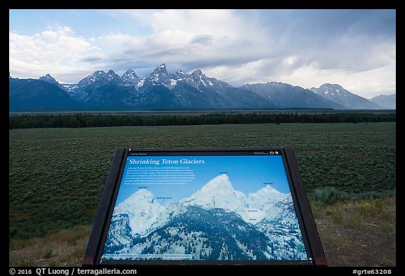 Shrinking Teton Glaciers interpretive sign. Grand Teton National Park, Wyoming, USA.