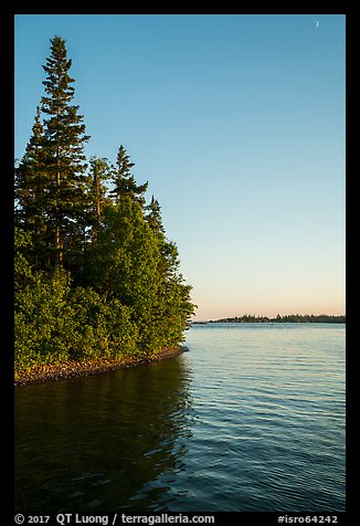 Trees growing at edge of water on Tookers Island. Isle Royale National Park, Michigan, USA.