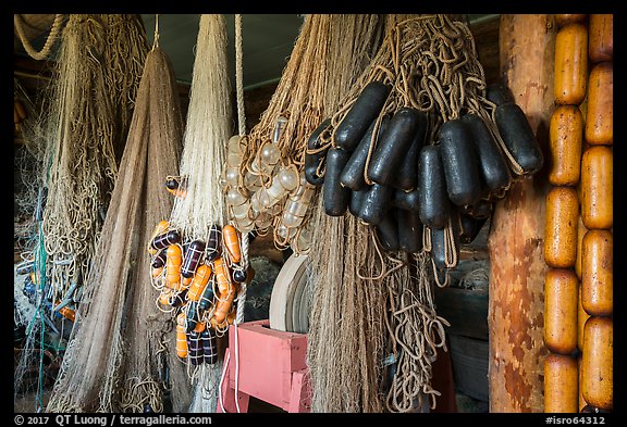 Fishing nets in Net House, Pete Edisen Fishery. Isle Royale National Park, Michigan, USA.