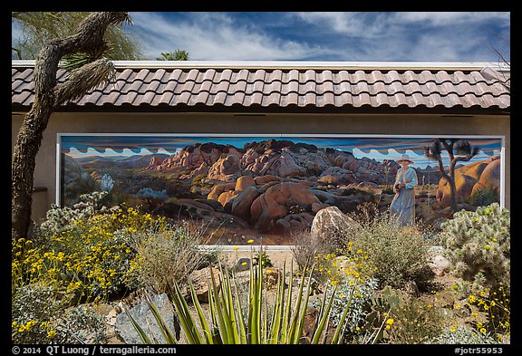 Desert plants and mural, Oasis Visitor Center. Joshua Tree National Park, California, USA.
