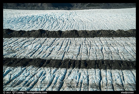 Aerial View of lateral moraines on Bear Glacier. Kenai Fjords National Park, Alaska, USA.