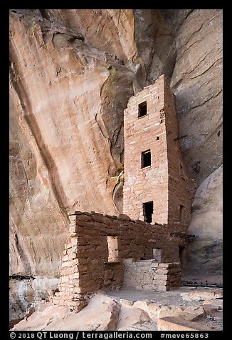 Tower and cliff inside Square Tower House. Mesa Verde National Park, Colorado, USA.