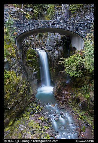 Bridge framing Christine Falls. Mount Rainier National Park, Washington, USA.
