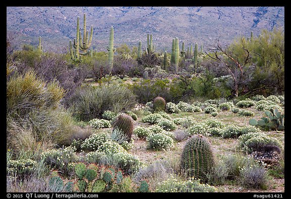 Carpet of Desert Zinnia flowers in lush desert landscape, Rincon Mountain District. Saguaro National Park, Arizona, USA.