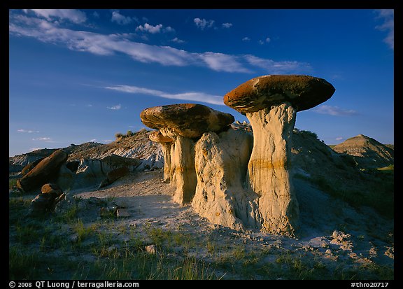 Caprock formations, late afternoon, Petrified Forest Plateau. Theodore Roosevelt National Park, North Dakota, USA.