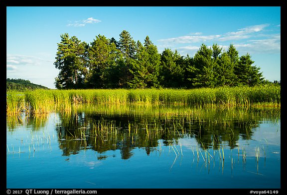 Trees, grasses, and reflections, Northwest Bay, Crane Lake. Voyageurs National Park, Minnesota, USA.