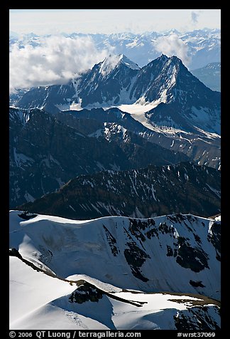 Aerial view of rugged peaks, Saint Elias Mountains. Wrangell-St Elias National Park, Alaska, USA.