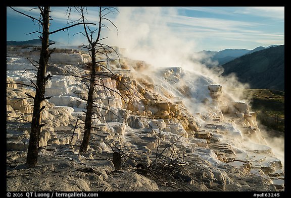 Canary Springs, morning. Yellowstone National Park, Wyoming, USA.