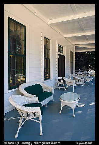 Chairs on porch, Wawona lodge. Yosemite National Park, California, USA.