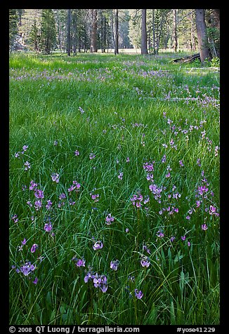 Meadow with carpet of purple summer flowers, Yosemite Creek. Yosemite National Park, California, USA.