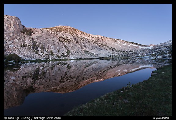 Fletcher Peak reflected in Vogelsang Lake, dusk. Yosemite National Park (color)