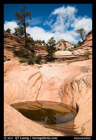 Pothole and slickrock, Zion Plateau. Zion National Park, Utah, USA.
