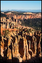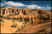 Innumerable brighly colored free-standing hoodoos, spires, fluted walls, and pinnacles are densely aligned in horseshoe-shaped amphitheaters along the edge of the Pausaugunt Plateau.