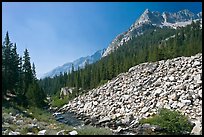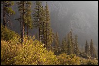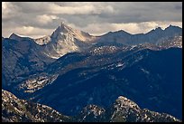 Giant Sequoias, the largest living things on earth, grow on the western slope of the luminous Sierra Nevada range, cut here by the deepest canyon in the country (depth 8,200 feet).