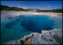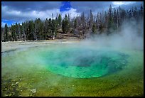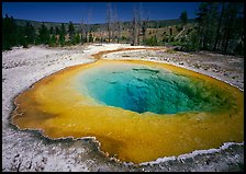 Old Faithful Geyser in the winter with moon. Yellowstone National Park ( color) Grand Geyser eruption, afternoon. Yellowstone National Park ( color) Fishing cone, fog, and sun rising. Yellowstone National Park ( color) Morning Glory Pool, midday. Yellowstone National Park ( color) Travertine formations in Upper geyser basin. Yellowstone National Park ( color) Mirror Pool, snow and steam. Yellowstone National Park ( color) Bare trees and steam in winter. Yellowstone National Park ( color) Thermal pool and dark clouds, winter. Yellowstone National Park ( color) Great prismatic springs, Midway geyser basin. Yellowstone National Park ( color) Grand Prismatic Spring detail from above. Yellowstone National Park ( color) Midway Geyser Basin along the Firehole River. Yellowstone National Park ( color) Thermal pond and dead trees. Yellowstone National Park (Panoramic color) Green and red algaes in Norris geyser basin. Yellowstone National Park ( color) Canary Springs, afternoon. Yellowstone National Park ( color) Canary Springs and mountains. Yellowstone National Park ( color) Grasses and stream. Yellowstone National Park ( color) Lilies on a small lake. Yellowstone National Park ( color) Yellowstone River and meadow in fall. Yellowstone National Park ( color) Ice on Yellowstone lake. Yellowstone National Park ( color) Falls of the Yellowstone River, early morning. Yellowstone National Park ( color) Wide valley and stream in summer. Yellowstone National Park (Panoramic color) Grasses and flowers on Specimen ridge, sunset. Yellowstone National Park ( color) Absaroka Range from Dunraven Pass, early morning. Yellowstone National Park ( color) Grizzly bear. Yellowstone National Park ( color) Bisons with snowy faces. Yellowstone National Park ( color) Snow-covered bison in winter. Yellowstone National Park ( color) Bison and Lion Geyser in winter. Yellowstone National Park ( color) Old Faithful Geyser at dawn. Yellowstone National Park ( color) Pine tree and Old Faithful geyser in winter. Yellowstone National Park ( color) Old Faithful Geyser and tree, afternoon. Yellowstone National Park ( color) Steam clouds drifting from Old Faithfull geyser. Yellowstone National Park ( color) Old Faithful Geyser and tree backlit in afternoon. Yellowstone National Park ( color) Old Faithful Geyser erupting, afternoon. Yellowstone National Park ( color) Old Faithful geyser. Yellowstone National Park (Panoramic color) Old Faithful geyser and tree. Yellowstone National Park (Panoramic color) Steam column from Old Faithful Geyser. Yellowstone National Park ( color) Old Faithful Geyser, late afternoon. Yellowstone National Park ( color) Old Faithful Geyser erupting, backlit by late afternoon sun. Yellowstone National Park ( color) Plume, long night exposure, Old Faithful. Yellowstone National Park ( color) Plume, Old Faithful geyser, winter night. Yellowstone National Park ( color) Old Faithful Geyser eruption and moon. Yellowstone National Park ( color) Old Faithful Geyser erupts at night. Yellowstone National Park ( color) Night view of Old Faithful Geyser in winter with full moon. Yellowstone National Park ( color) Run-off and geyser, steam obscuring moon, Old Faithful. Yellowstone National Park ( color) Trees shadowed in thermal steam, Upper geyser basin. Yellowstone National Park ( color) Geyser cone in Upper geyser basin. Yellowstone National Park ( color) Castle Geyser in Upper Geyser Basin. Yellowstone National Park ( color) Daisy Geyser erupting at an angle. Yellowstone National Park ( color) Bright colors of morning Glory Pool. Yellowstone National Park ( color) Raibow colored Morning Glory Pool. Yellowstone National Park ( color) Thermal pool, upper Geyser Basin. Yellowstone National Park ( color) Beauty Pool. Yellowstone National Park ( color) Chromatic Pool in Upper Geyser Basin. Yellowstone National Park ( color) Thermal landscape with pool. Yellowstone National Park (Panoramic color) Landscape with thermal pool. Yellowstone National Park (Panoramic color) Steam out of Beauty pool in Upper geyser basin. Yellowstone National Park ( color) Grand Geyser,  tallest of the regularly erupting geysers in the Park. Yellowstone National Park ( color) Fumeroles and forest in Upper Geyser Basin. Yellowstone National Park ( color) Black Sand Basin with trees killed by hot springs. Yellowstone National Park ( color) Dead trees, Black Sand Basin. Yellowstone National Park ( color) Tree skeletons in Black Sand basin. Yellowstone National Park ( color) Thermal steam and frosted trees. Yellowstone National Park ( color) Steam rising from Rainbow Pool. Yellowstone National Park ( color) Rainbow Pool, Black Sand Basin. Yellowstone National Park ( color) Emerald Pool, Black Sand Basin. Yellowstone National Park ( color) Sapphire Pool, afternoon. Yellowstone National Park ( color) Blue clear waters in Sapphire Pool. Yellowstone National Park ( color) Sapphire Pool. Yellowstone National Park ( color) Water runoff from hot springs, Biscuit Basin. Yellowstone National Park ( color) Colorful algaes patterns, Biscuit Basin. Yellowstone National Park ( color) Detail of colorful algaes, Biscuit Basin. Yellowstone National Park ( color) Turquoise thermal pool. Yellowstone National Park (Panoramic color) Thermal scenery with hot springs. Yellowstone National Park (Panoramic color) Sapplings and burned trees in winter. Yellowstone National Park ( color) Snow-covered trees. Yellowstone National Park ( color) Snow-covered branches. Yellowstone National Park ( color) Tree skeletons in winter. Yellowstone National Park ( color) Wintry forest and steam. Yellowstone National Park ( color) Steam and forest in winter. Yellowstone National Park ( color) Thermal steam along the Firehole River in winter. Yellowstone National Park ( color) Firehole river and bison in winter. Yellowstone National Park ( color) Buffalo herd and Geyser Hill in winter. Yellowstone National Park ( color) Winter landscape with thermal run-off. Yellowstone National Park ( 