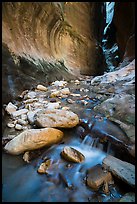 Open section with tall walls, Orderville Canyon. Zion National Park ( color) Looking upwards, Orderville Canyon. Zion National Park ( color) Tight passage, Orderville Canyon. Zion National Park ( color) Vegetation and sandstone walls, Orderville Canyon. Zion National Park ( color) Sandstone canyon and vegetation, Orderville Canyon. Zion National Park ( color) Shadows and light, Orderville Canyon. Zion National Park ( color) Slot between canyon walls, Orderville Canyon. Zion National Park ( color) White boulders, Orderville Canyon. Zion National Park ( color) Stream, Orderville Canyon. Zion National Park ( color) Glowing wall, Orderville Canyon. Zion National Park ( color) Stream and glowing wall, Orderville Canyon. Zion National Park ( color) Cascading stream and boulders, Orderville Canyon. Zion National Park ( color) Stream flowing, Orderville Canyon. Zion National Park ( color) Tree growing on large jammed boulder, Orderville Canyon. Zion National Park ( color) Large jammed boulder, Orderville Canyon. Zion National Park ( color) Large boulder creating waterfall with a second boulder suspended above, Orderville Canyon. Zion National Park ( color) Large boulder creating waterfall with Guillotine boulder above, Orderville Canyon. Zion National Park ( color) Boulder called Guillotine wedged in Orderville Canyon. Zion National Park ( color) Slot canyon section of Orderville Canyon. Zion National Park ( color) Stream in slot canyon, Orderville Canyon. Zion National Park ( color) Stream and glowing wall, Orderville Canyon. Zion National Park ( color) Cascade and boulder in Orderville Canyon. Zion National Park ( color) Waterfall and jammed log, Orderville Canyon. Zion National Park ( color) Stream in narrow watercourse, Orderville Canyon. Zion National Park ( color) Narrow watercourse in Orderville Canyon. Zion National Park ( color) Twisted and narrow watercourse, Orderville Canyon. Zion National Park ( color) Dark passage in Orderville Narrows. Zion National Park ( color) Orderville Narrows. Zion National Park ( color) Sculpted walls, Orderville Narrows. Zion National Park ( color)