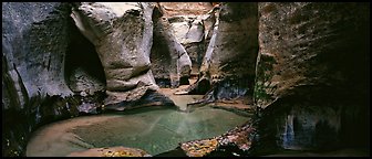 Pools and sculptured walls, Subway. Zion National Park ( color) Water flowing over pools and fluted walls, Subway. Zion National Park ( color) Pools and slot canyon rock walls, the Subway. Zion National Park ( color) Pools and sculptured sandstone walls, the Subway, Left Fork of the North Creek. Zion National Park ( color) Sculptured walls of narrow gorge. Zion National Park (Panoramic color) North Creek flowing over fallen leaves, the Subway. Zion National Park ( color) The Subway. Zion National Park ( color) Tunnel-shaped opening of the Subway. Zion National Park (Panoramic color) North Creek flowing in the Subway in the fall. Zion National Park (Panoramic color) Water flowing in pools in  Subway, Left Fork of the North Creek. Zion National Park ( color) Clear pool, the Subway. Zion National Park ( color) Pool and tunnel-like opening, the Subway. Zion National Park ( color) Downstream view of the Subway. Zion National Park ( color) Water flowing in pools in the Subway, Left Fork of the North Creek. Zion National Park ( color) Pools and fallen leaves in autumn, the Subway. Zion National Park ( color) The Subway in autumn. Zion National Park (Panoramic color) Tunnel-like opening and autumn leaves. Zion National Park (Panoramic color) Narrow canyon carved in tunnel-like shape, the Subway. Zion National Park ( color) Pool and alcove, the Subway. Zion National Park ( color) Left Fork flowing over pools, the Subway. Zion National Park ( color) Cascades and pools, the Subway. Zion National Park ( color) Golden reflections in pools, the Subway. Zion National Park ( color) Water cascading over pools, the Subway. Zion National Park ( color) Cascades in tunnel-shaped canyon, the Subway. Zion National Park ( color) Entrance of the Subway, Left Fork of the North Creek. Zion National Park ( color) Entrance of the Subway, Left Fork of the North Creek. Zion National Park ( color)