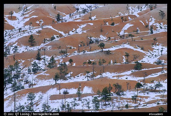 Location: US National Parks / Plateau / Bryce Canyon Subjects: Deserts, Ice and Snow, Nobody, Outside, Scenics Skyless, Seasonal Snow, Seasons, Wild Scenics, Wilderness, Winter