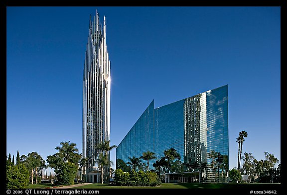 Subjects: Architectural Styles, Atmosphere and Sky, Buildings and Structures, Cathedrals, Christianism, Civilization, Cloudless Sky, Glass Buildings, Modern Architecture, Monuments, Nobody, Outside, Palm Trees, Religion, Religious Buildings, Scenics with Sky, Towers, Trees, Vegetation