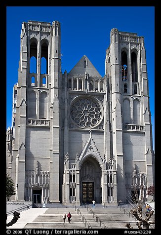 Subjects: Architectural Styles, Atmosphere and Sky, Buildings and Structures, Cathedrals, Christianism, Civilization, Cloudless Sky, Daily Activities, Gothic Architecture, Man-made spaces, Outside, People and Activities, People Walking and Strolling, Religion, Religious Buildings, Steps