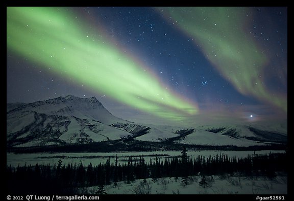 Northern lights over Brooks Range, winter. Gates of the Arctic National Park, Alaska, USA.